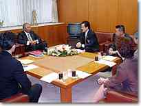又午後3時30分より日本商工会議所会頭 山口様のビデオ取りを行いその後日本商工会議所会頭山口様と鈴木会長が対談を行いました。関専務 大脇直前会長も同席を致しました。広報委員会全員出席で総力を上げて取材を行いました。 鈴木会長がYEGの今年度の取り組みを説明を行い45分間の対談を終了致しました。