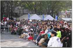 これは平成14年度に千葉YEGの都市問題研究委員会が、中心市街地活性化のためのTMO事業というものを1年間研究し、今年度はその実践のひとつとして、千葉市におけるTMO事業であるイベント事業に取り組んだもので、初めての主催事業となりました。今まで青年部は、1995年から毎年10月に「サウンドinちば」というイベントの中で、一般参加者によるパフォーマンスコンテストの運営を担っていましたが、今回は千葉YEGが全ての面で責任を持って作り上げました。