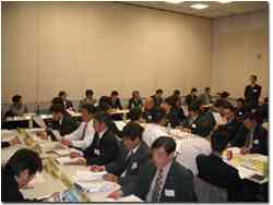 | 1月16.17日、第3回平成16年度役員予定者会議が、浜松のカリアック・商工会議所研修センターで行われた。 三回目の役員予定者会議とは言え、皆緊張していたのだろう、ピンと張り詰めた空気の中会議は始まった。15年度の役員の方々のアドバイスを頂きながら、年間スケジュール、予算、各委員会の事業計画、2月13、14日に開催される 第21回全国会長研修会 ふくい会議での役員会、委員会、会員総会等について話し合われた。また各委員会の人員の配属が発表され、これから1年苦楽を共にする運命の仲間との初顔合わせとなった。