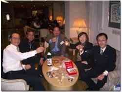 そんな不安と期待の入り混じった緊張感が解き放たれたのは、夜のお楽しみ、懇親会での小園次年度会長の乾杯からだった。長時間の会議のため疲れきった体も、すっぽん鍋を食べて元気が出たのだろうか、皆、思い思いに弾けていた。そして気が付けば、森総務委員長予定者がマイクを握っていた。そう言えば、浜松駅前で皆がバスに乗り込むときも、彼はマイクを握っていた。関西弁でのお笑いトークで皆を盛り上げる彼の側には、小園次年度会長予定者や中村専務予定他役員の穏やかな笑顔があった。
