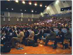 大会当日は海峡メッセに場所を移し沢山の来賓者の参加を頂きまたOBの皆様にも沢山参加を頂き今までにない大会を開催致しました。次回は島根県平田YEG主管で平成16年9月10日(金)11日(土)で平田大会が開催されます。