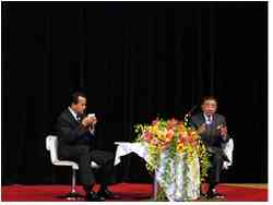 記念式典閉会後、14時より記念講演を潟Cトーヨーカ堂 鈴木敏文氏、経済ジャーナリスト 財部誠一氏お二方による 激動の時代を切りひらくために・・・「イトーヨーカドーグループの経営」に学ぶと題し大勢YEGはもとより一般の聴講もあり、皆さん講演の中から「何か」を掴み取ったようです。