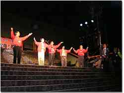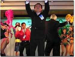 とゆうことで18時より松阪市総合体育館前の屋外に設営された大懇親会場です。開会前にサンバですよサンバ、盛り上げますね〜。
