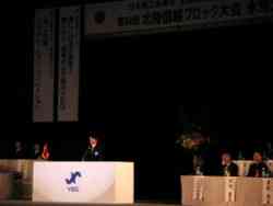 お昼ごろ会場の氷見ふれあいスポーツセンターに無事到着、広報委員と合流し婦人部のふるまうおにぎりとうどんで腹ごしらえ、式典、講演の撮影準備も終え少しうとうと。