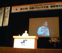 12時からの記念式典は場所を観音寺市民会館大ホールに移し記念式典、役員会での挨拶、議事進行の時と打って変わって引き締まった面持ちで淡々と挨拶をする藤田ブロ代が印象的でした。
