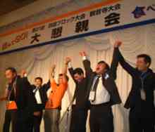 いよいよ18時30分から観音寺グランドホテルにおいて大懇親会。飲んでGO!食べてGO!ちょっぴり御色気も交えて盛大に盛り上がりました。感無量になって顔がグチャグチャになった藤田ブロ代、大仕事を終えた安堵感も手伝って涙涙の懇親会でありました。