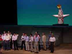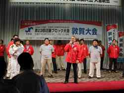 Kreisによる歌3曲、パート2では大阪大学吹奏楽団35名による演奏が披露され、大変お洒落な雰囲気の中時が過ぎたのでした。その後は、恒例のPRタイム。次年度近畿ブロック大会開催地の敦賀YEGのメンバー及び商青連役員等の応援メンバーも併せ盛大な初PR。続いて全国大会の帯広YEG秋バージョンによるPRがあり場内に“蝦夷は、なまらえ〜ぞ〜!”がこだましていました。PRタイムが終わると次第にステージは月夜に変貌し、大阪大学吹奏楽団のトランペットアンサンブルが「夜空のトランペット」を奏でる中、大前実行委員長がスポットを浴び登場。参加していただいた方々への率直な感謝の気持ちを述べ、最後に、商青連・中地区担当の竹川副会長による閉会の辞で、予定をしていました全てのスケジュールを無事盛会裡に終えることが出来ました。