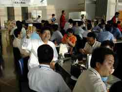 つづく【第3部】の各分科会。第1分科会では「夏はこれ!出来立てアサヒビールの試飲と工場見学」ビール好きにはたまらない分科会です。第2分科会は「楽ちん吹田バスツアー(アーバンとルーラルの体験)」と銘打ち、江坂駅周辺の高層ビルが建ちならぶ進取的な街のイメージ(アーバン(都市))と、千里ニュータウンなどに見る緑豊かなイメージ(ルーラル(田舎))が違和感なく調和する街「吹田」をバスで周遊しながら見学していただきました。第3分科会はホテル阪急エキスポパークにて「これで医療が変わる!最先端バイオ技術の講演」のタイトルで、大阪大学の森下竜一教授による講演を開催。第4分科会は会場を万博記念公園に移動し『あのっ!「太陽の塔」の中を観てみよう&万博記念公園の散策』を企画し、かつて人類の進歩と調和の象徴であった太陽の塔の現在を見学していただきました。各分科会も盛況に終わり、参加者は各々本大会のエンディングイベントの【第4部】大懇親会会場のホテル阪急エキスポパークへと移動。ロビーでは物産展が開かれており協賛各社から提供された商品が参加メンバーに無料でプレゼント。どの商品も大人気であっという間になくなりました。