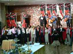 そして最後は、’70〜’80代のディスコナンバーに乗ってEnjoy大懇親会を行ないました。星野ブロック会長の挨拶で幕を開け、小園商青連会長挨拶、鏡開き、スズキ直前会長の乾杯、そしてスペシャルゲストのご縁満開一座の「夢あざやかに」の大合唱で盛り上がり最高潮に達しました。笑いあり、涙あり、感動の2日間で参加した全ての人が、自分なりの【en】を感じとったのではないでしょうか? |