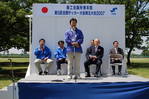 前日の降雨により、プログラムの変更まで憂慮する状況でありましたが、大会当日は晴天に恵まれ、予定通り開会式を迎えることができました。