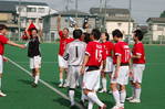 真夏を思わせる天候の下、汗をいっぱいかき、顔を真っ赤にしながら、ボールを追いかけてきました。