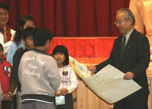 午後は、ものづくりの街浜松らしく、廃材を利用して音をイメージするものを、親子で創ったり、道徳クイズや青年部から誕生した市のイメージソング“夢が輝く浜松”を合併後の新浜松の映像を見ながら、親しんでいただいた。