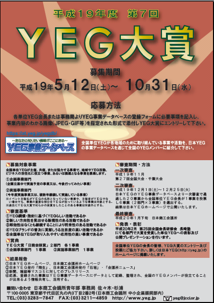 | 浜松YEG | 平成19年度浜松市政令指定都市移行記念事業『集え!起業家の卵たちよ!』 |