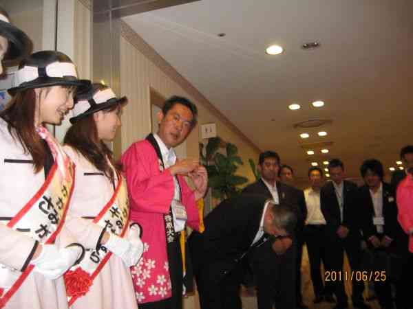 PRを終了して横山ブロ代の御礼の挨拶中。・・・桐井実行委員長は話も聞かずラブ注入です。