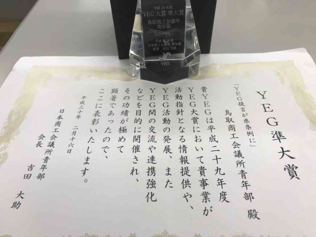 この度の『準大賞』受賞にあたり、全国の会員の皆さん、日本YEGの皆さん本当に有難うございました。