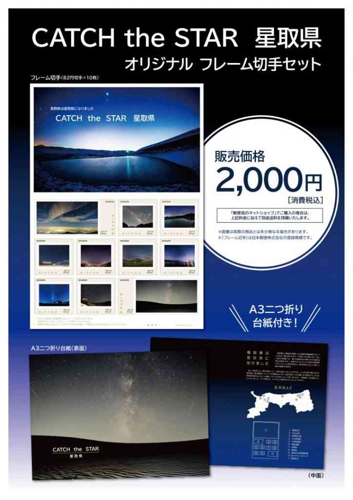 また、3月12日には『星取県フレーム切手』(@2000.-)1000部、『星取県消印スタンプ』(4/30まで押印)を鳥取YEGと日本郵便(株)の共同制作により発売、消印押印