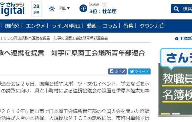 山陽新聞にMICEの岡山誘致へ連携を提言が掲載されました 岡山県連