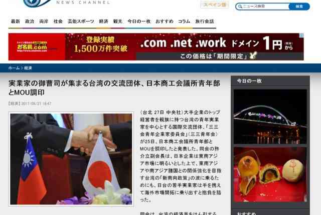 フォーカス台湾のウェブサイトに三三会と日本YEGのMOU調印の模様が掲載されました。
