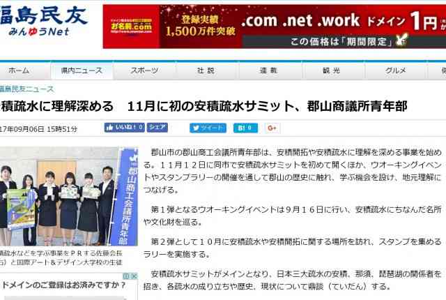 郡山市の郡山商工会議所青年部は、安積開拓や安積疏水に理解を深める事業を始める。11月12日に同市で安積疏水サミットを初めて開くほか、ウオーキングイベントやスタンプラリーの開催を通して郡山の歴史に触れ、学ぶ機会を設け、地元理解につなげる。