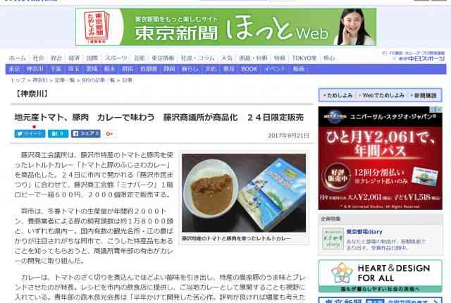 藤沢商工会議所青年部の有志がカレーの開発に取り組んだトマトと豚のふじさわカレーを商品化した。24日に市内で開かれる「藤沢市民まつり」に合わせて、藤沢商工会館「ミナパーク」1階ロビーで一箱600円、2000個限定で販売する。