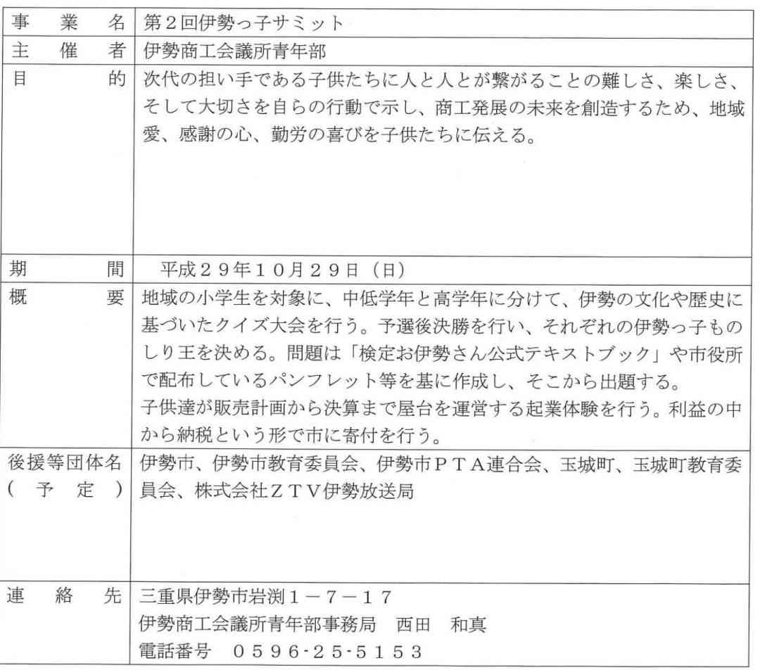 次代の担い手である子供たちに人と人が繋がることの難しさ、楽しさ、そして大切さを自らの行動で示し、商工発展の未来を創造するため、地域愛、感謝の心、勤労の喜びを子供たちに伝える。