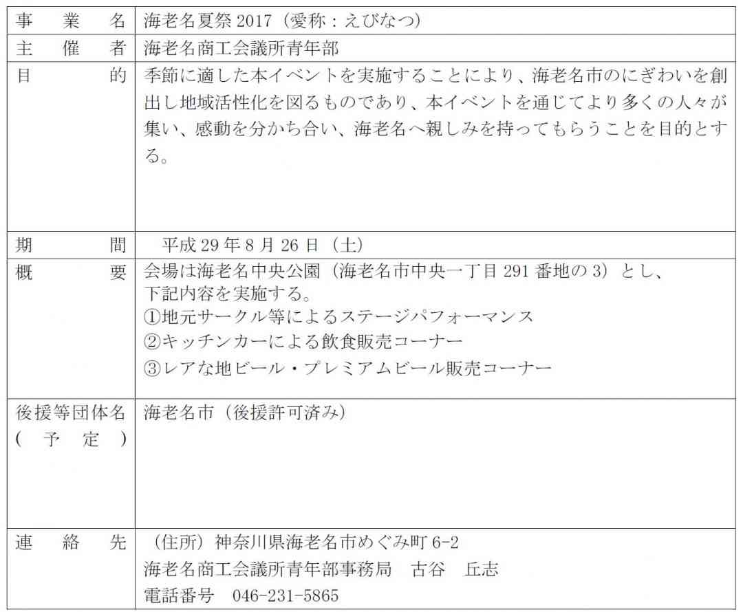 季節感あふれるイベントを開催し海老名市の賑わいを創出して地域活性化を図るまた、より多くの人々が集い、感動を分かち合い、海老名市に親しみを持ってもらう。