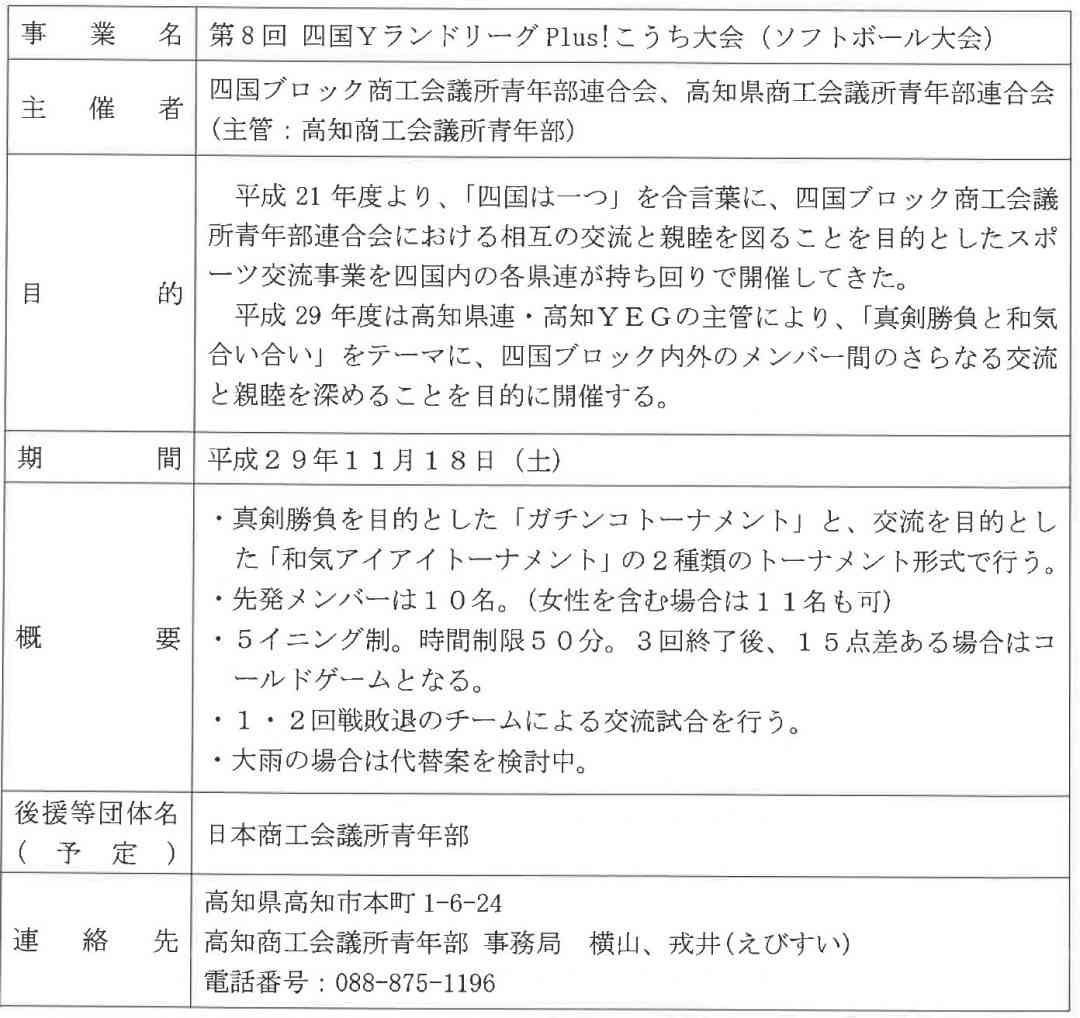 21年度より開催されている「四国は一つ」を合言葉に四国ブロック商工会議所青年部連合会における相互の交流と親睦を図ることを目的にしているスポーツ交流会。