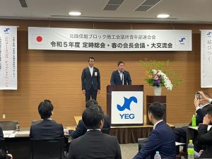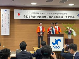 令和5年5月27日(土)、クロスベイ新湊iCNホール(富山県射水市)にて、北陸信越ブロック春の会長会議が開催され、日本YEGより事業説明や各委員会PRをいたしました。