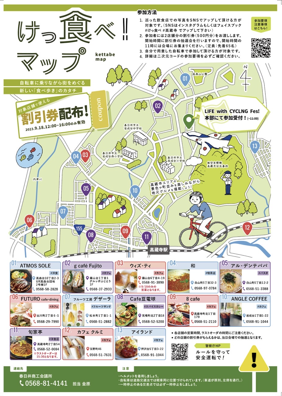 ※ 愛知県の方言として、自転車を「けった」と称することから、自転車でグルメを食するイベントを、「自転車=けった」+「グルメ=食べる」を合わせた造語として、『けっ食べ!』と名付けました。