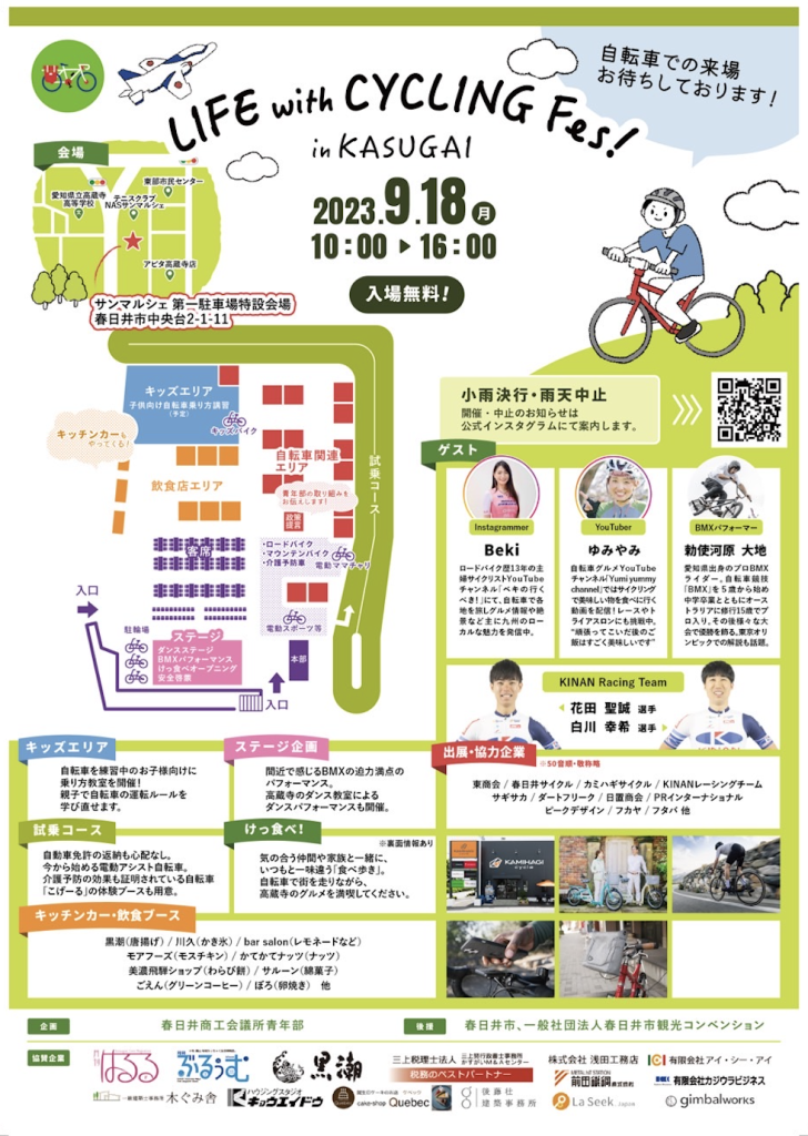 ”自転車と共にある生活環境 ”を内外共に広く周知するために、9月定例会「Life with CYCLING Fes in Kasugai ~のりたいをつくりたい~」を開催しました。