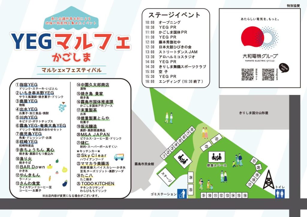 県連主体で鹿児島県内の各単会と一丸となってイベントを行う、県産の商品を一般客にアプローチするきっかけ作りとYEGの地域社会への認知度を上げる場とするため、各単会が一事業者となり収益事業として挑戦できる「YEGマルフェかごしま」を開催しました。
