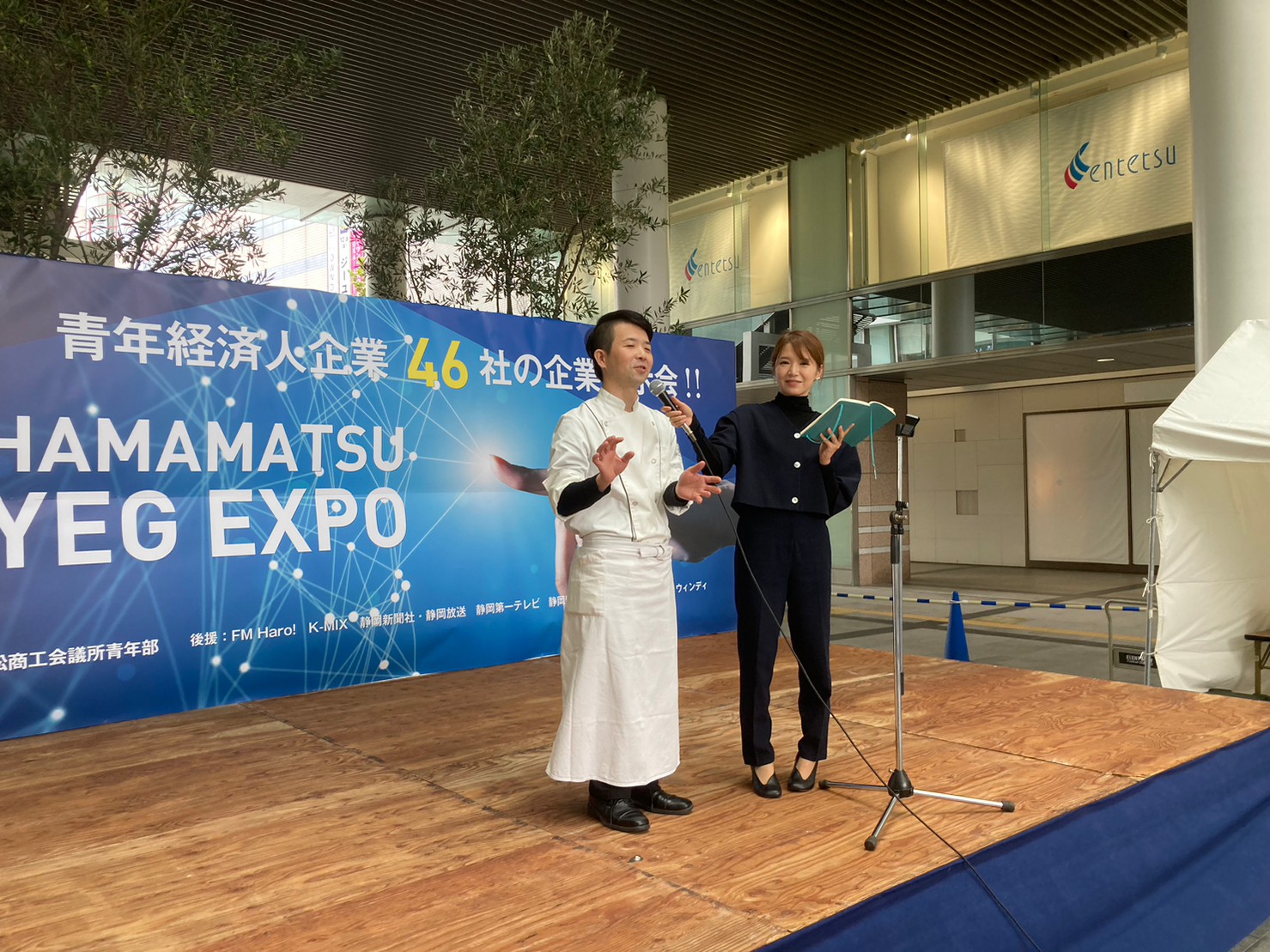 当日は出展企業PRタイムを設け出展者に対してインタビューを行いました。静岡で活躍するアナウンサーとの掛け合いにより、企業紹介や自社製品の魅力についてPRしました。