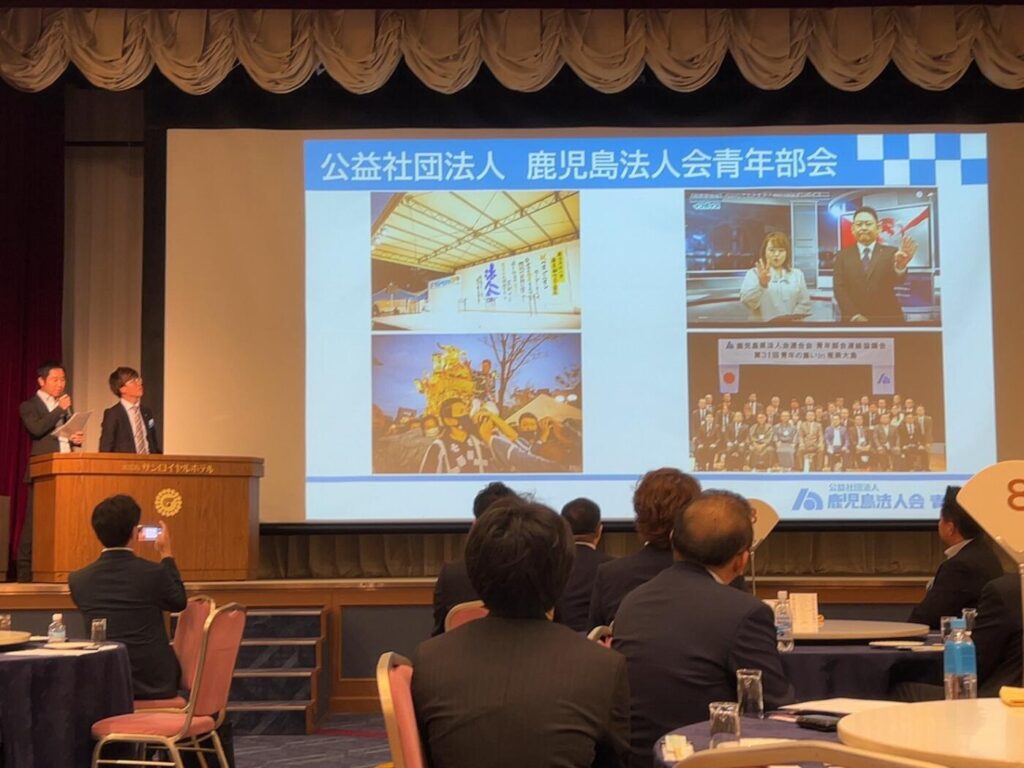 お互いの団体紹介を終えた後は、鹿児島商工会議所青年部と公益社団法人鹿児島法人会青年部会の合同会務報告が行われました。