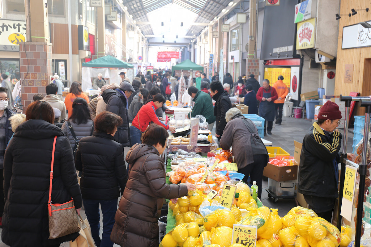 この市は、毎月第三日曜日の午前8時から11時まで、倉敷駅前商店街で開催され、高梁川流域の新鮮な野菜や果物、加工品などの特産品が並びます。