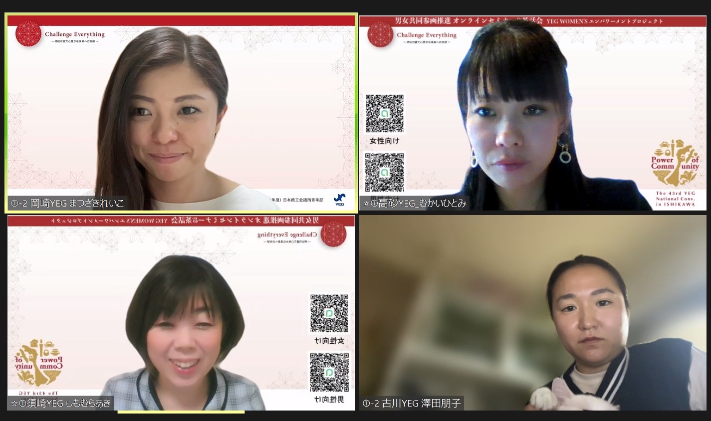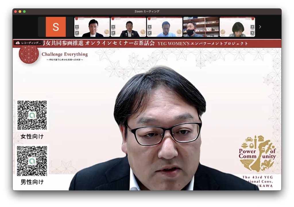 第1回 男女共同参画推進 オンラインセミナー&茶話会 YEG WOMEN’S エンパワーメントプロジェクト