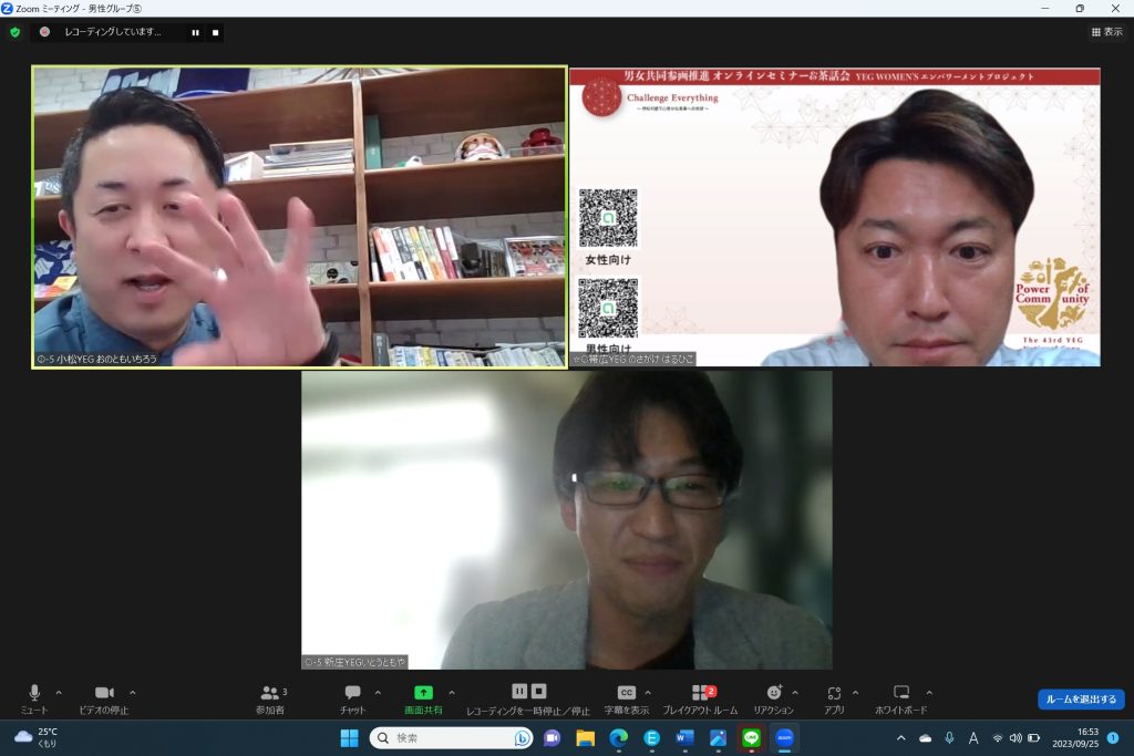 SDGs週間最終日の2023年9月25日(月)に、第1回 男女共同参画推進 オンラインセミナー&茶話会 YEG WOMEN’S エンパワーメントプロジェクトを開催いたしました。
