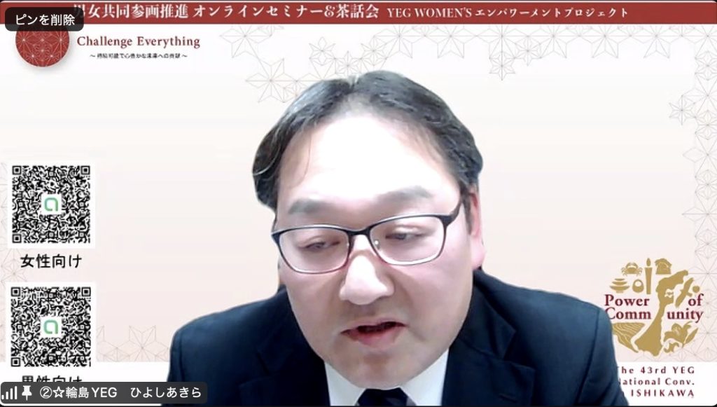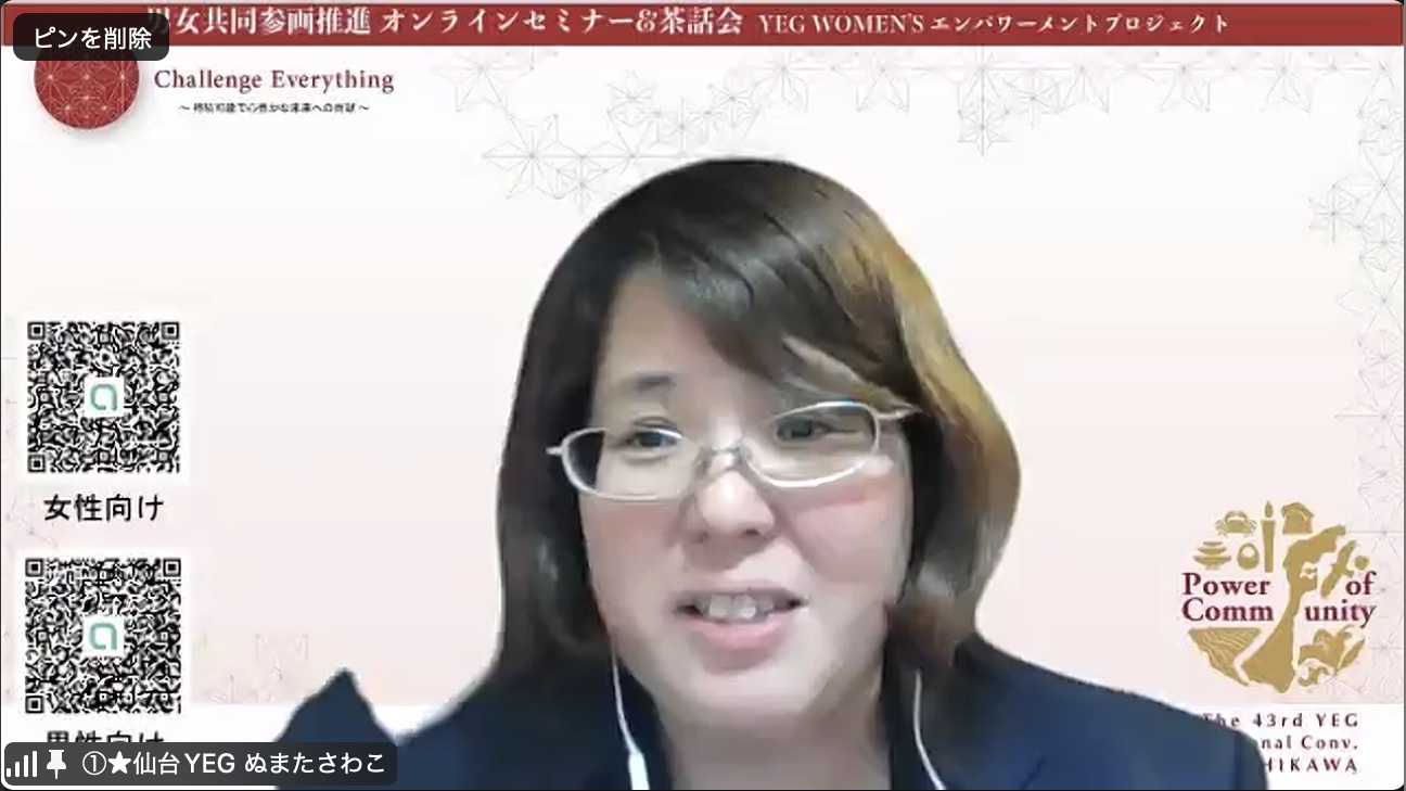 第1回 男女共同参画推進 オンラインセミナー&茶話会 YEG WOMEN’S エンパワーメントプロジェクト