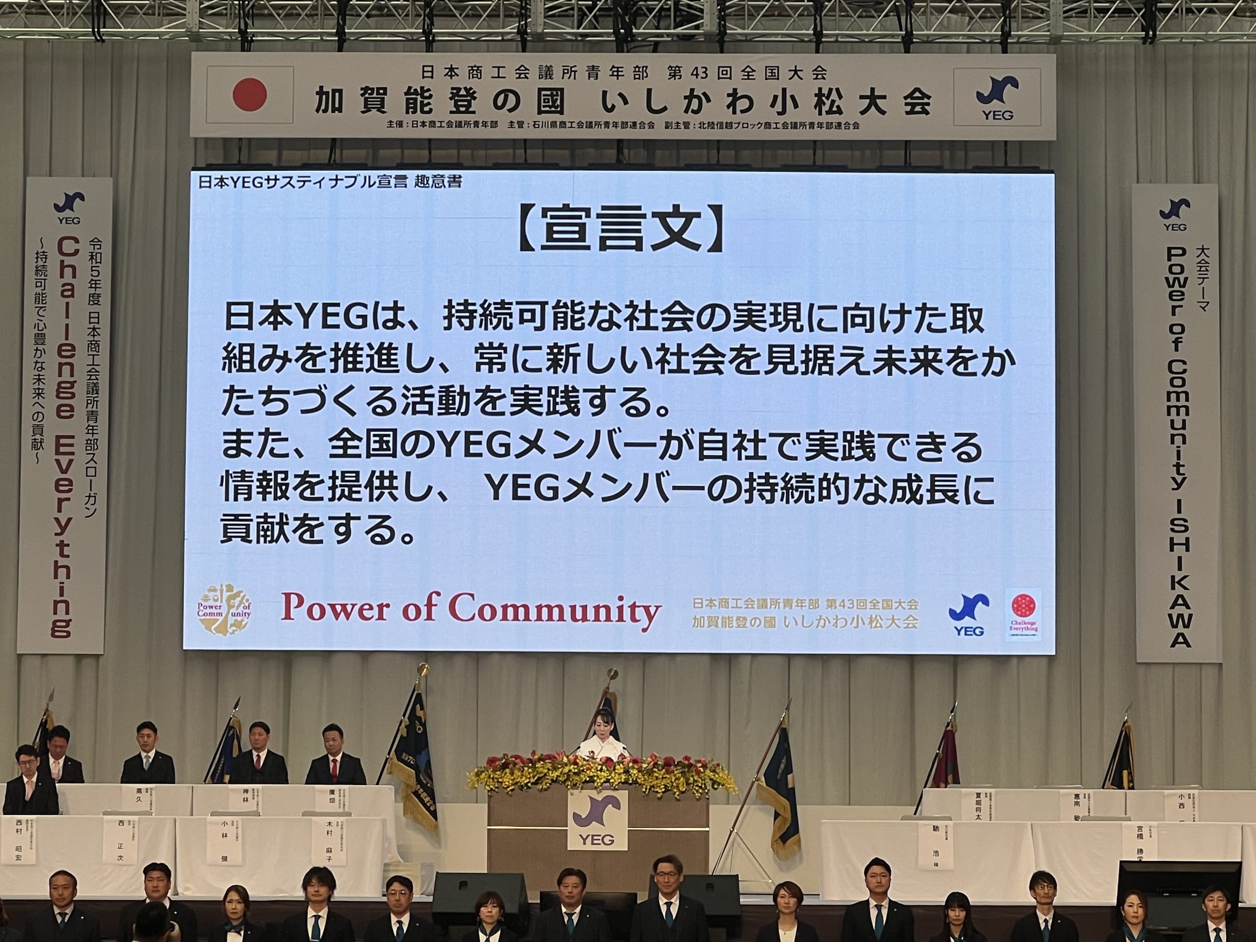 令和5年3月16日の第43回全国大会加賀能登の國いしかわ小松大会の記念式典において、サスティナブル宣言が発表されました。