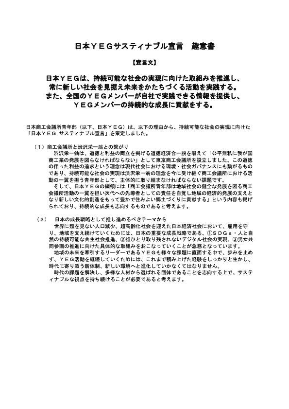 (1) タイトルを「日本YEGサスティナブル宣言 趣意書」とする