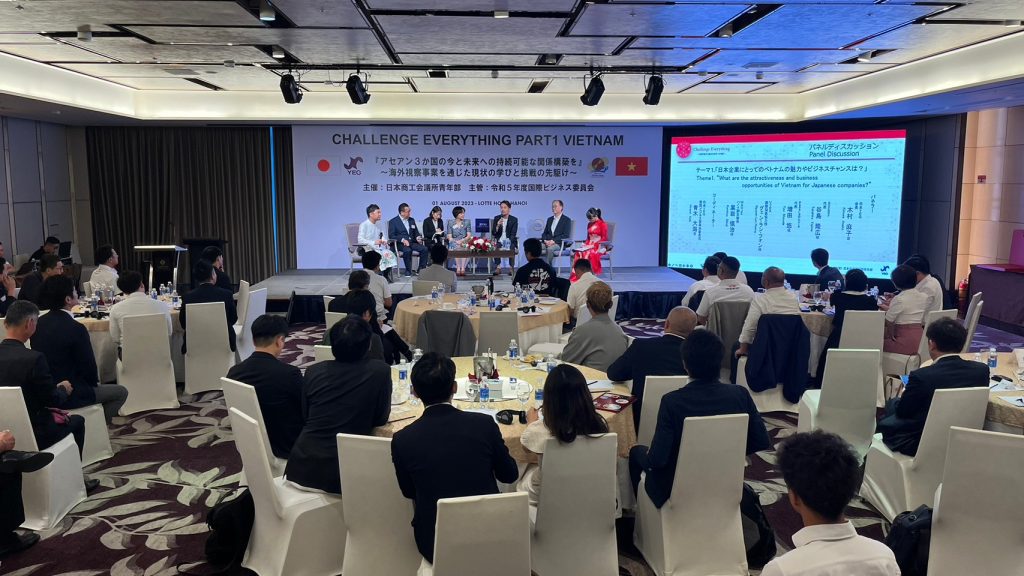 在ベトナム日本国大使公邸 山田滝雄 特命全権大使へ表敬訪問して、歓迎レセプションディナーが行われた翌日に、ベトナム商工会議所青年部(VYEA) を訪問、講演やトークディスカッション、交流会が行われました。
