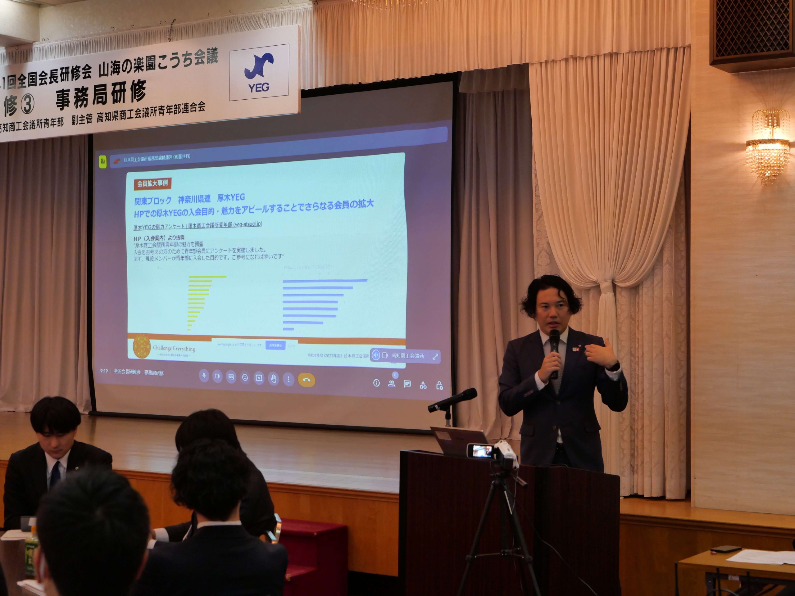 今大会は、「課題解決先進県が実現させる地方創生」を研修会テーマに掲げ、全国の単会会長・次年度会長、そして次代を担う熱意ある会員の皆様に交流と研鑽の機会となりました。互いに学び合い、交流を深め合う姿は、まさに「互譲互助」の精神を体現するものであり、YEGの素晴らしさを改めて感じることができました。
