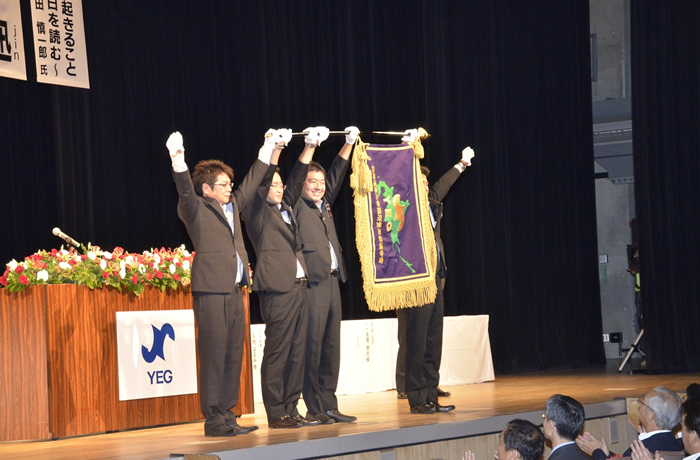 ブロック代表理事 串橋 伸幸 開催地テーマ 青年我飛 ~人を元気に!まちを元気に!今、われらYEGが飛躍する~ 期 日 平成23年9月16日~18日 場 所 恵庭市民会館 他 参加者 568名 主なプログラム 記念講演(講師 ハイテクAC 中村宏之氏)