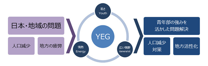 本提言は春の会長会議において「地域の経済を活性化するための地方創生」「地域の雇用を確保するための事業承継」のテーマで行われた日本全国409単会の会長の議論をふまえて作成したものである。提言の視点としては、本年度のスローガンである『YEG EMBLEM 繋がりを我が力に変えて!更なる「連帯の証」を求めよう!』のもと、地域の中小企業の最前線で働き、家庭においては子育て世代としてYEGメンバーが共有する課題について、「繋がり」を「力」に変えるYEGならではの視点で提言するものである。