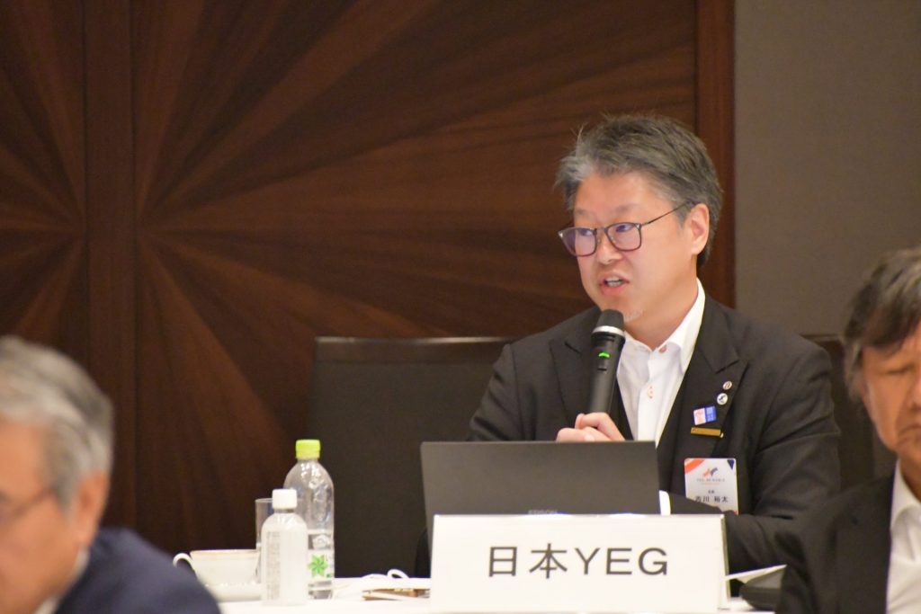 7月17日、日本商工会議所の常議員・委員長等が参加する夏季政策懇談会が開催されました。同懇談会では、「デフレ脱却と経済好循環実現に向けた地域・中小企業の『稼ぐ力』の強化」をテーマに、出席者(全国の商工会議所会頭等)が討議しました。日本YEG代表として出席した吉川会長は、税理士の立場から事業承継税制について発言しました。