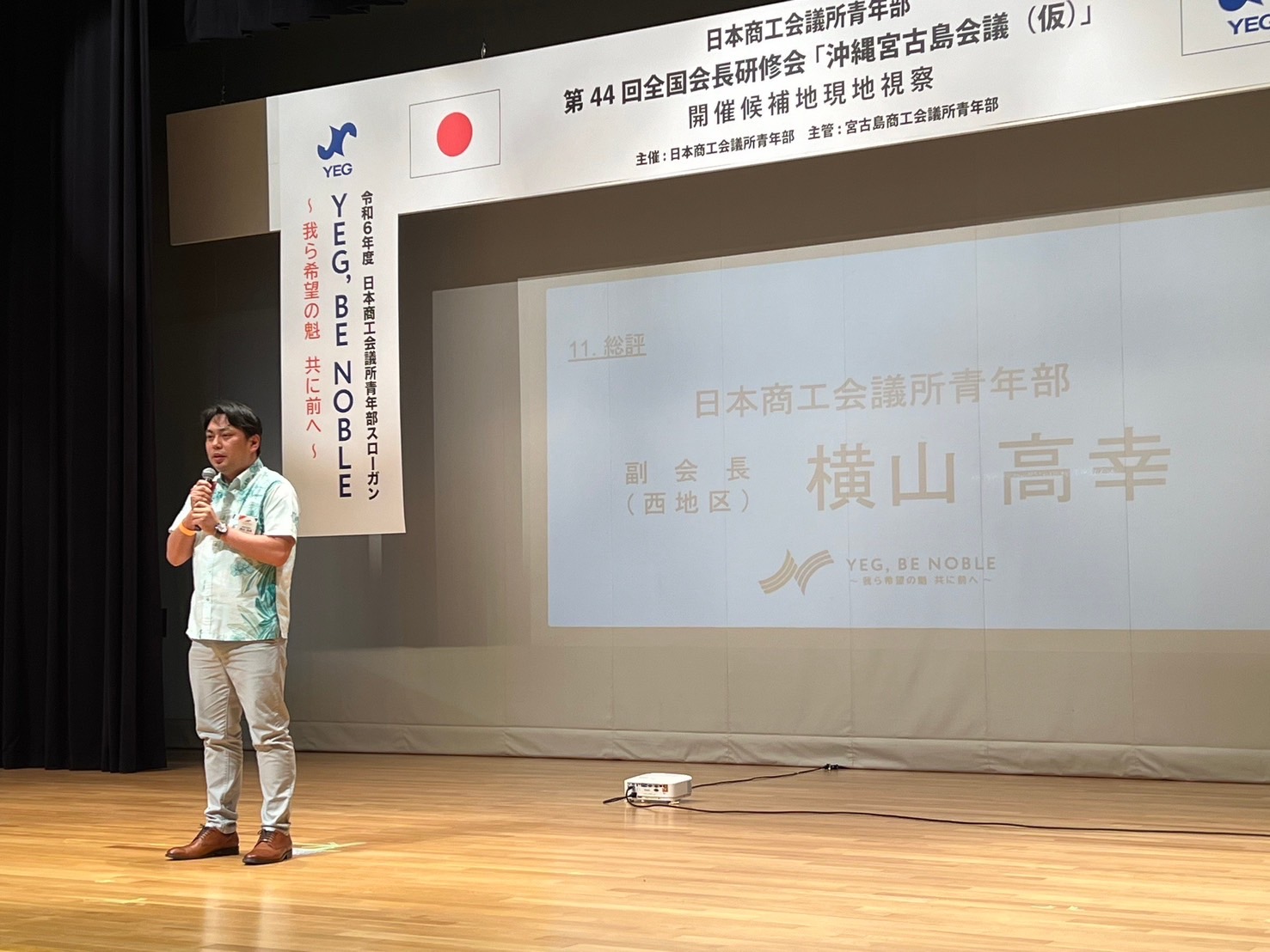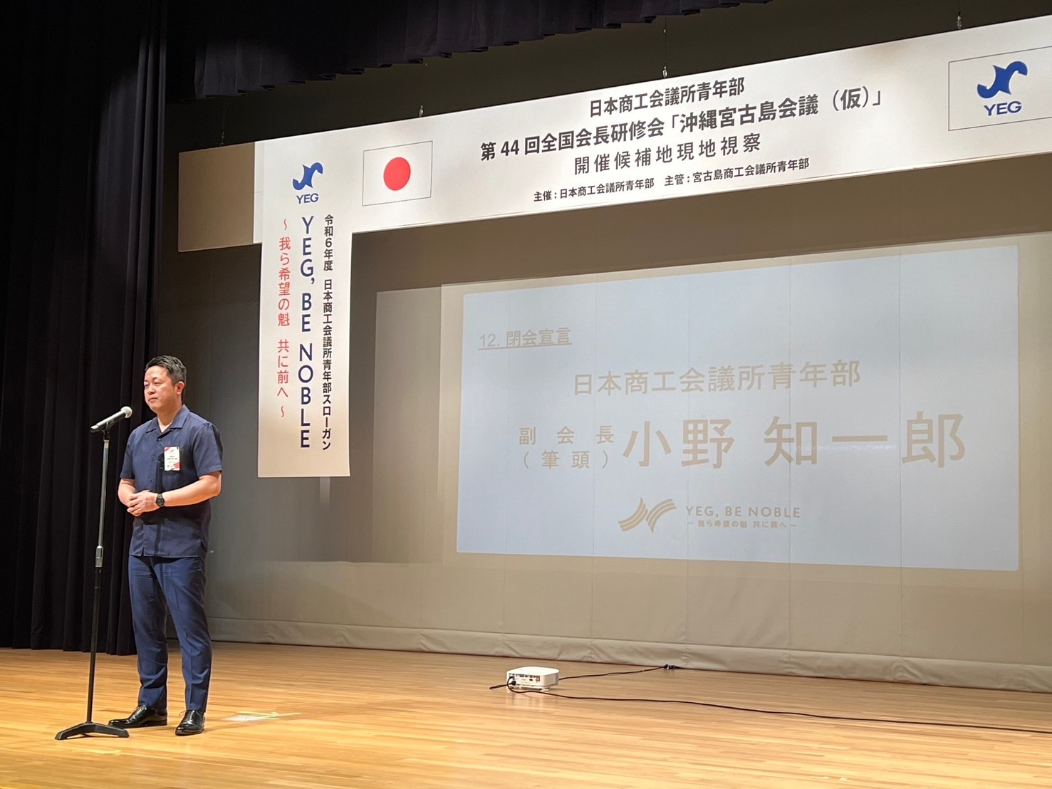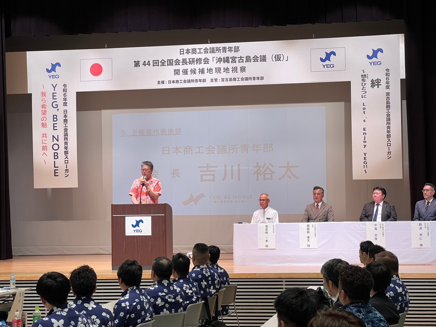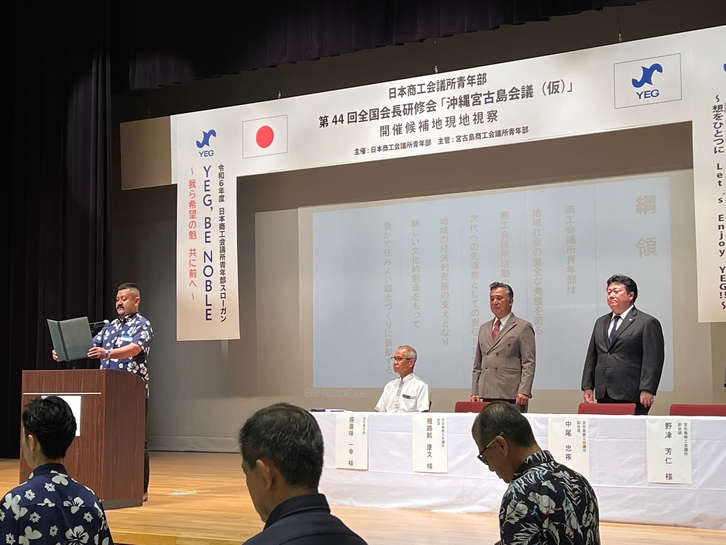 去る令和6年6月7日(金)、沖縄県宮古島市の未来創造センターにおいて日本商工会議所青年部第44回全国会長研修会「沖縄宮古島会議(仮)」の開催候補地現地視察が行われました。