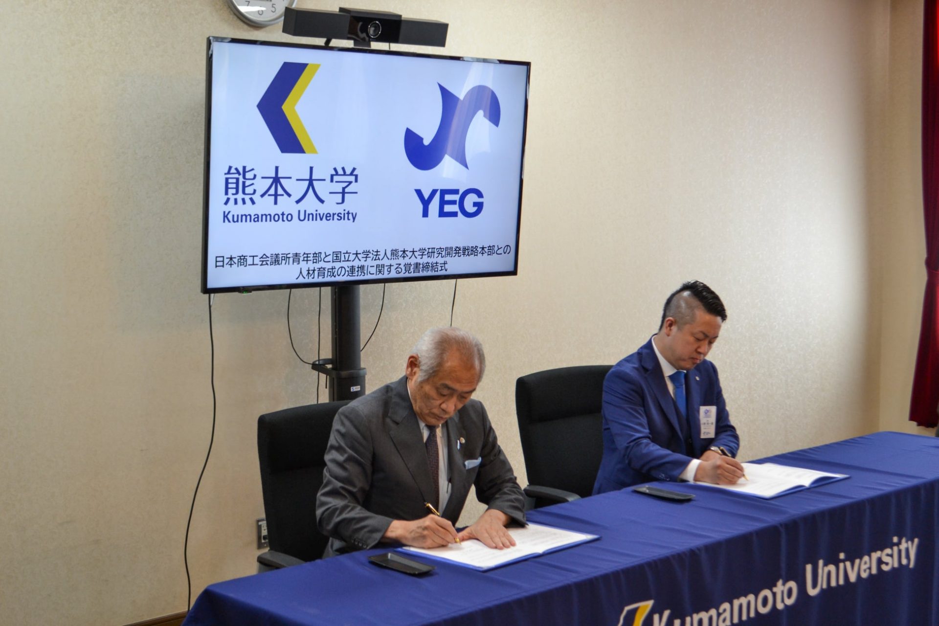 2025年6月25日、日本全国の若手経済人が所属する日本商工会議所青年部(日本YEG)と、国立大学法人熊本大学研究開発戦略本部は、全国規模での「地域未来創造塾」の展開を通じた人材育成に連携して取り組むことを目的とした覚書の締結式を実施しました。