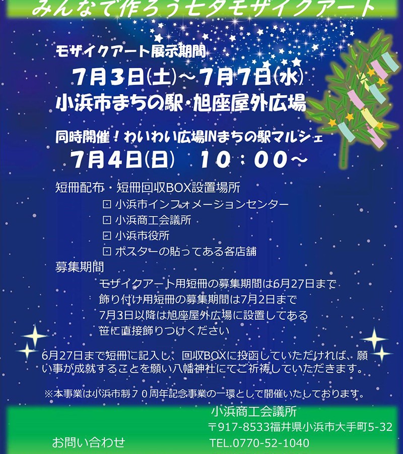 小浜YEG 旭座屋外広場をライトアップ!! みんなで作ろう七夕モザイクアート
