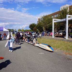 そして、今年度は前年度に続いて2回目となる「いいとこ白山鉄道まつり2022」を、1年半後に開業を控えた「ビジターセンター」のすぐ近くの会場で開催しました。内容も前年度からの充実を図り、トイレール、鉄道運転シミュレーター、Nゲージジオラマ、ミニ新幹線乗車会、鉄道ぬり絵、鉄道縁日、駅弁販売、ガラポン等、楽しいイベントを盛りだくさん用意しました。また、楽しいだけでなく、鉄道の歴史を感じられる鉄道写真展を設けたり、「ビジターセンター」の概要を丁寧に紹介するパネルも展示したりしました。