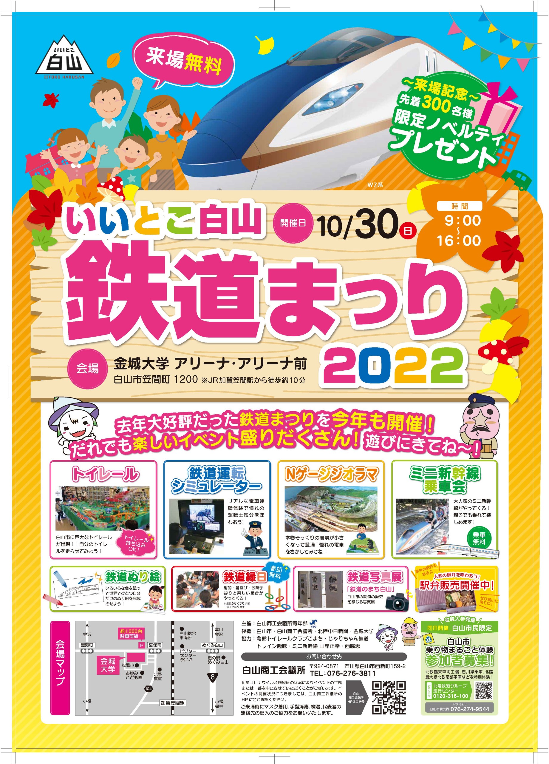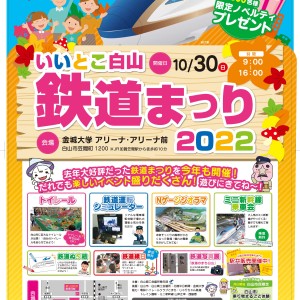 開催目的・内容:白山市は、全国でも珍しい「新幹線、在来線、民間鉄道という3種類の車両基地が同じ市にある」という特徴があります。また、当市内にある「白山総合車両所」は、全国で6つしかない新幹線の総合車両基地の1つであり、最新の設備を備えた日本有数の総合車両基地でもあります。
