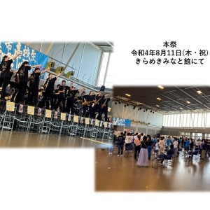 【本祭の開催】 令和4年8月11日(木・祝)10:00~17:00に、きらめきみなと館イベントホールにて、以下の内容のイベントを開催しました。 ・高校生たちによるダンスや歌のステージ発表 ・参加者同士で交流するミニゲーム、カードゲームなどプチイベント ・SNSを利用した交流イベント(景品あり) ・唐揚げやメロンパン、デザートなどキッチンカー(高校生が出店を依頼)・敦賀工業高校:各科の無料体験コーナー・お祭り屋台コーナー(輪投げ、スマートボール)・浴衣レンタル 着付けコーナー・ヤマハと福井県による楽器体験会(おとまち@福井) ・高校生指導による地元の民謡踊り 本祭当日の様子を地元ケーブルテレビ局RCNさんがまとめてくださいました。